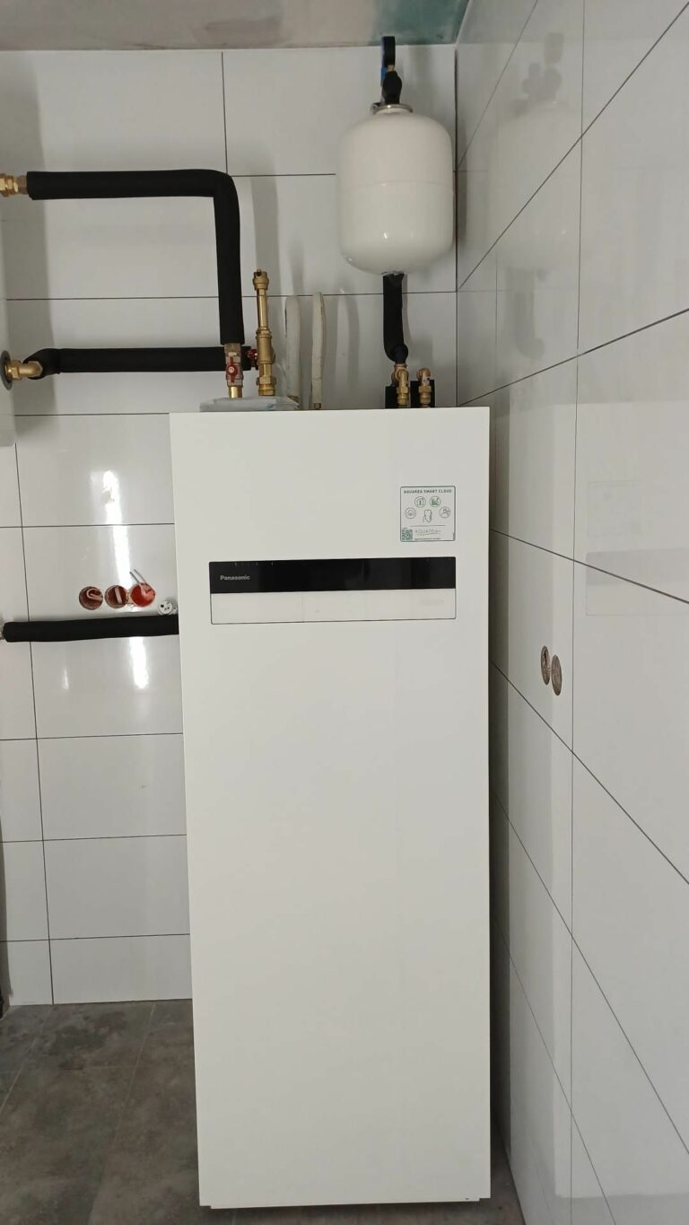 Instalacja pompy ciepła Panasonic All in One o mocy 7 kW, z buforem 80 litrów
